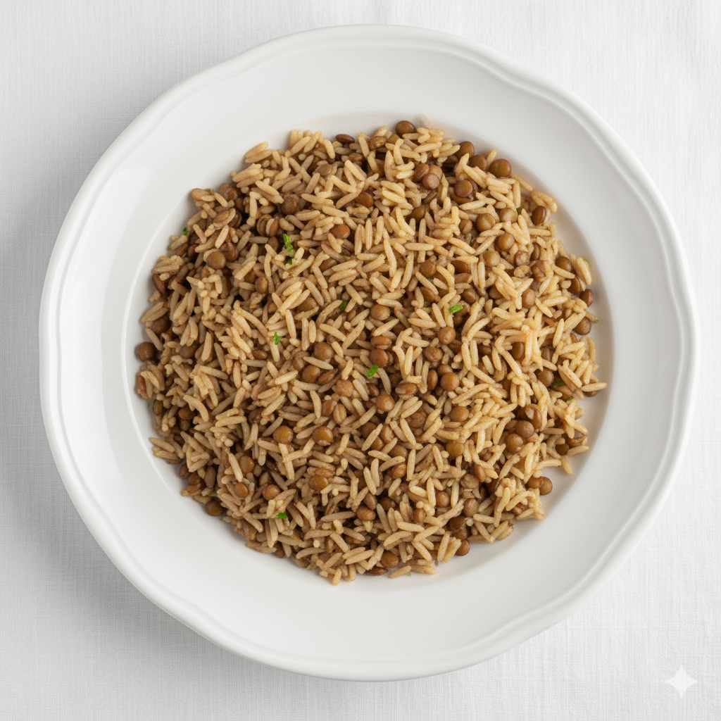 - Put the lentils and rice onto a place and add golden onion slices on top (optional).