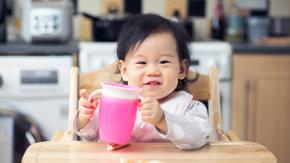 At 6 months, babies are ready to start learning to drink water from an open cup.